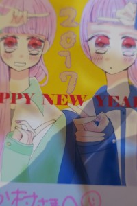 どうぞ、今年も宜しくお願いします。沢山のお年賀を頂きありがとうございました。写真は漫画家志望の中学生になったばかりの御嬢さんから頂いた年賀状。本当に小さい字でお寿司を食べられて幸せでしたのコメント付き今年はいい年になりそうです。