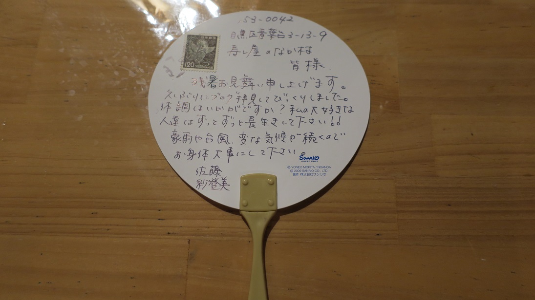 さとみさんお便りありがとうございます。ご心配頂き自分はすっかり復調しました。まさか半年で体重も復調するとは思いませんでしたが・・・・・さとみさんはお元気そうで本当にうれしいです。お子様ももう大きくなられたのでしょうね。一時はさとみさんに会うと先生の事を色々思い出して辛い時もありましたが月日が経ちいまでは一番お会いしたいですね。お便りに”私の大好きな人達はずっとずっと長生きしてください”とお言葉を頂き、もう泣けて泣けてお言葉通り、まだまだ先生の所には逝きません。寿しを握る事が好きで好きで堪りません。近いうちに俺の寿しを食べてください。美味くなってると思います。
